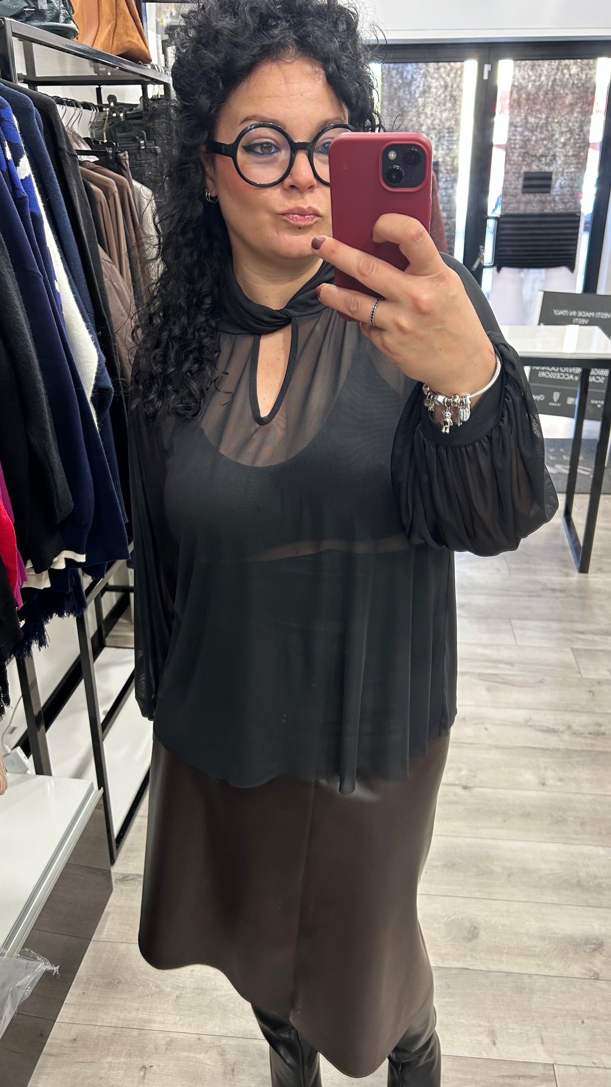 Aggiungi un tocco di eleganza e sensualità al tuo look con questa camicia in tulle trasparente! 💖