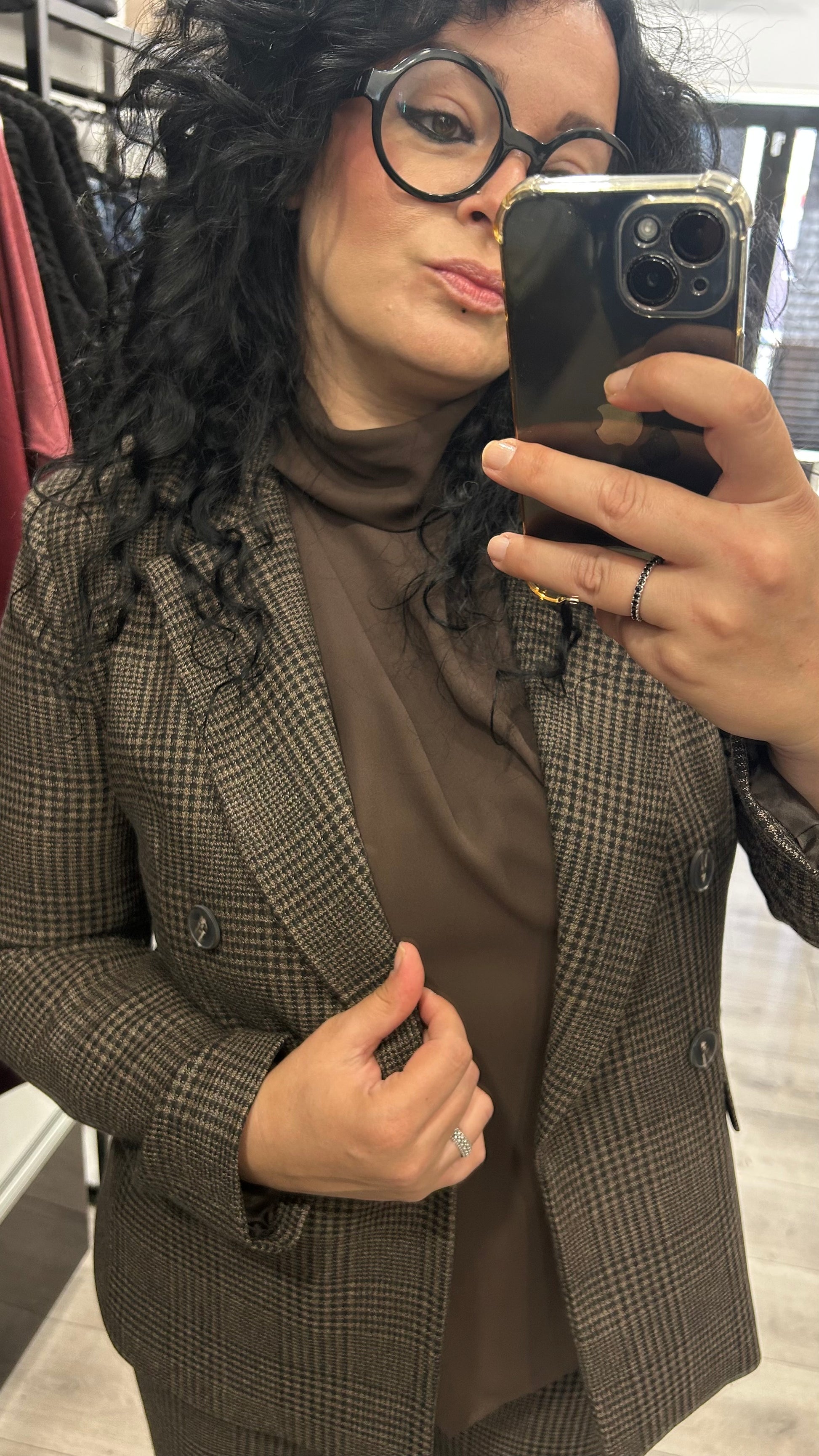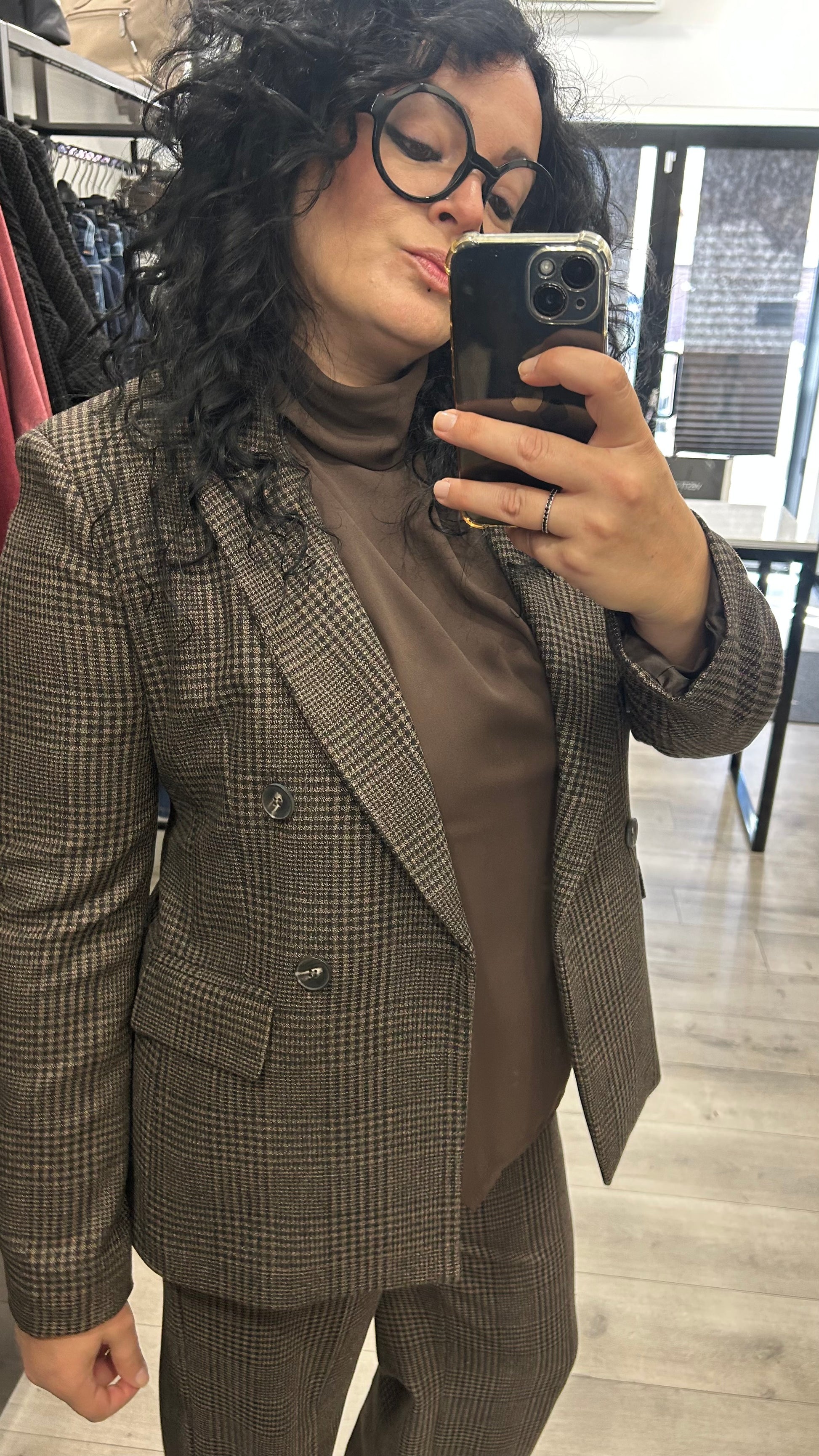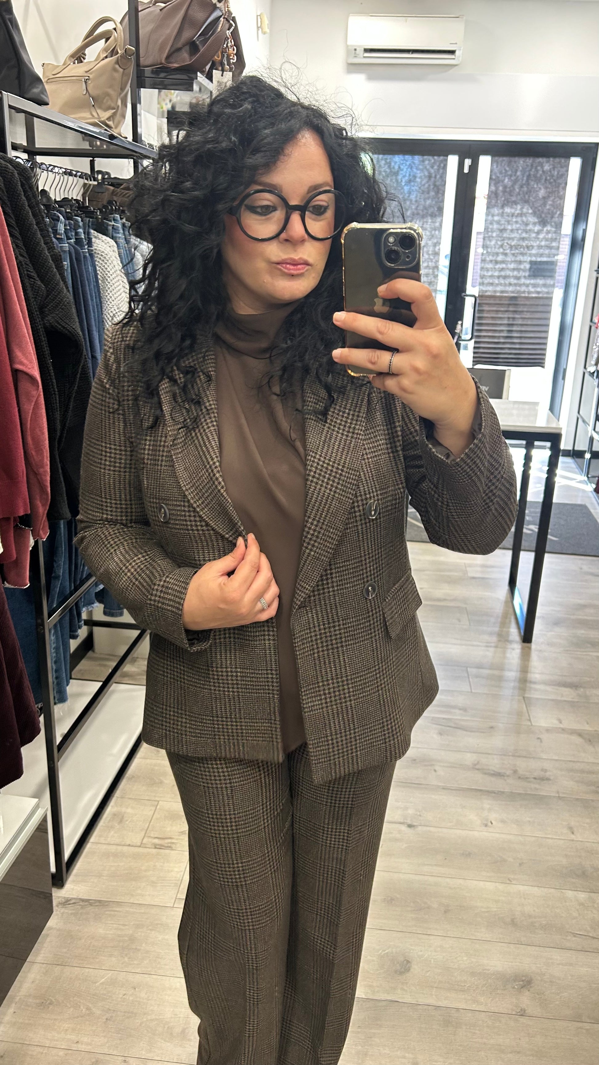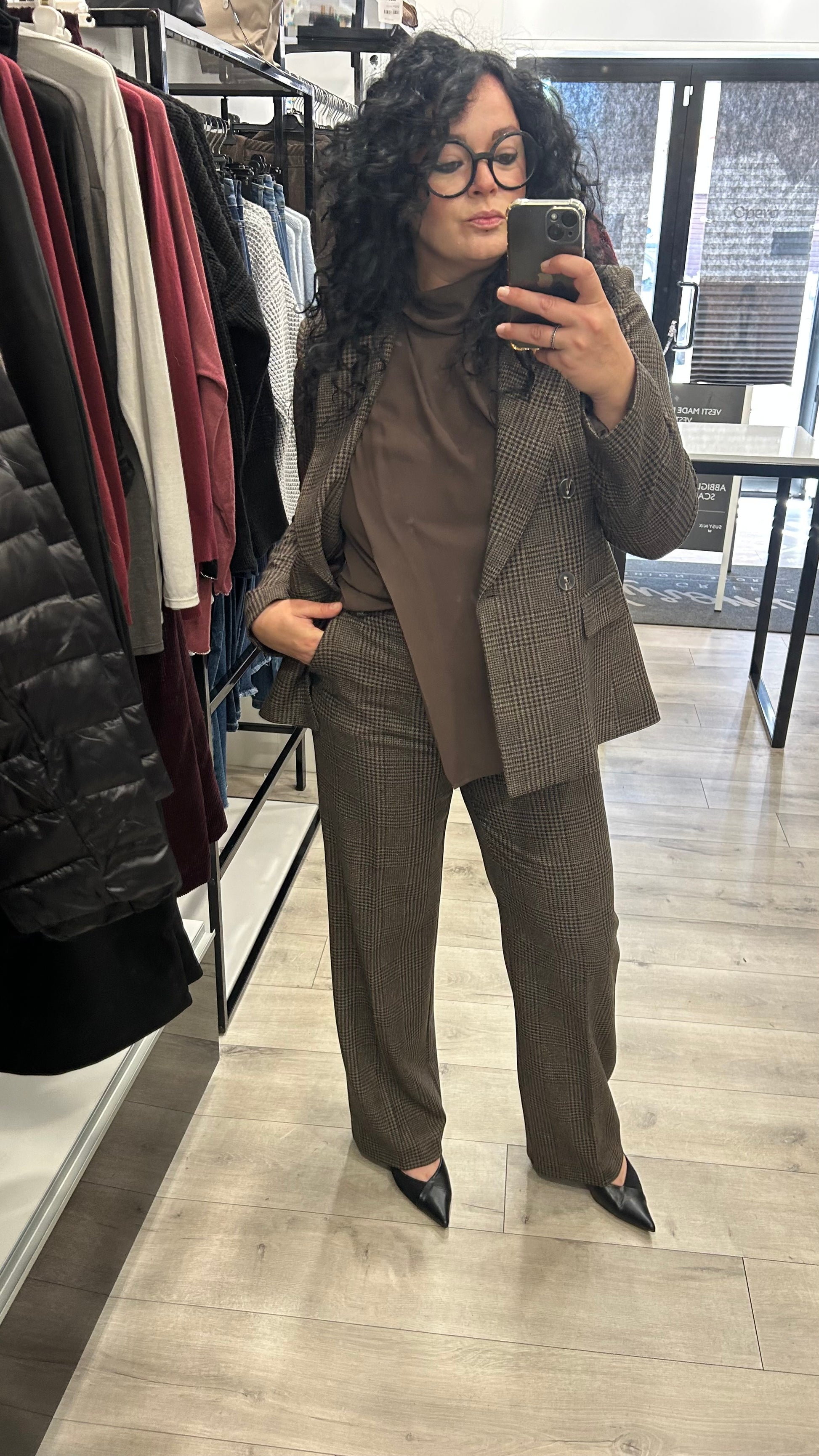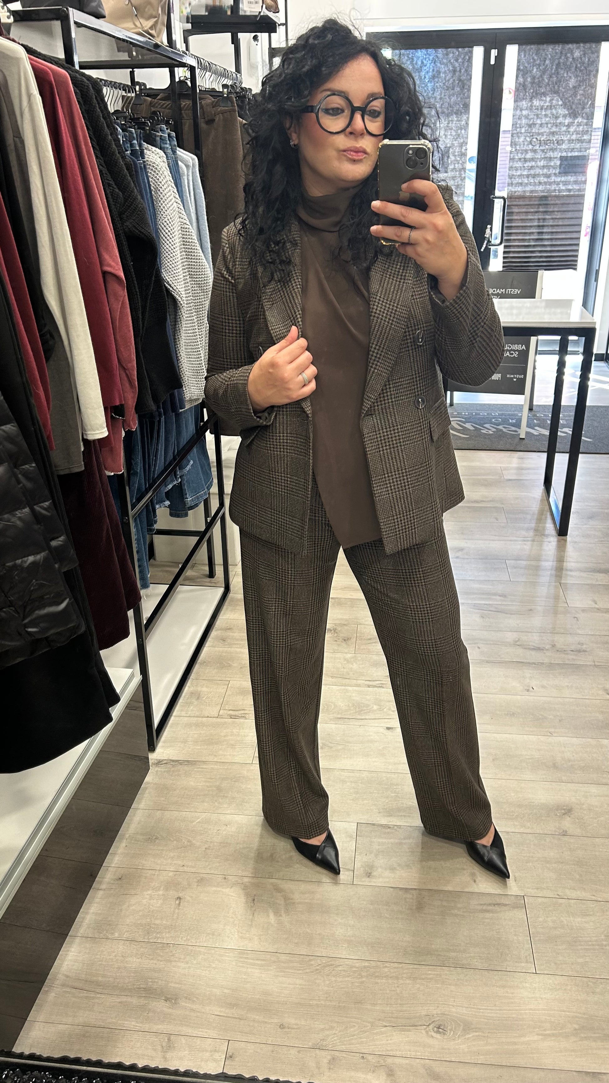 Un look elegante, deciso e super contemporaneo! Questo completo a fantasia Principe di Galles con sfondo marrone è il mix perfetto tra stile classico e tendenza attuale. 🔥