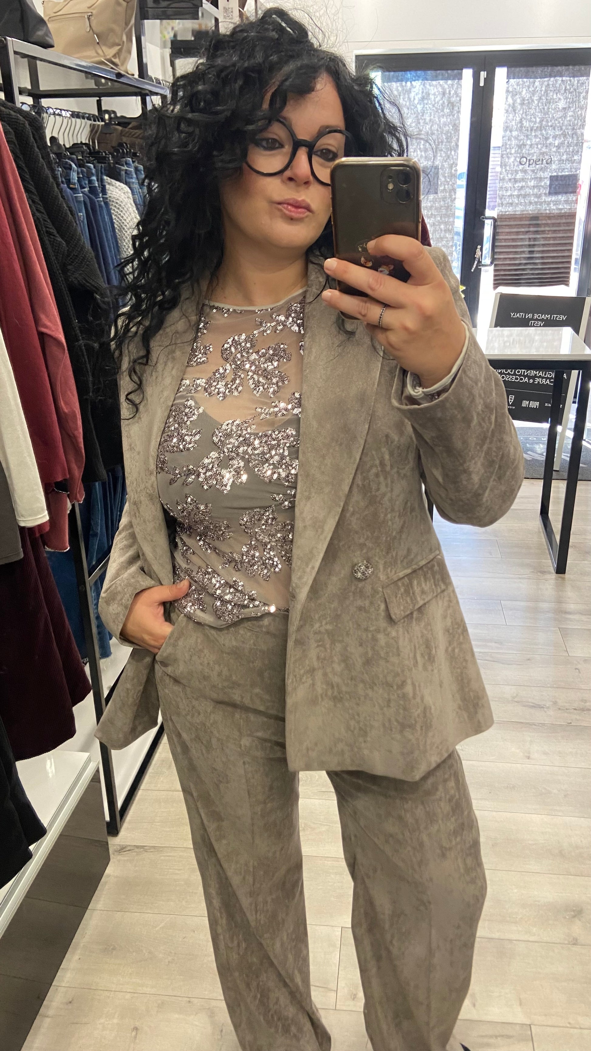 Distinguersi con stile non è mai stato così semplice. Questo completo elegante in velluto frisé è la scelta perfetta per chi ama l’eleganza contemporanea con un tocco di originalità.