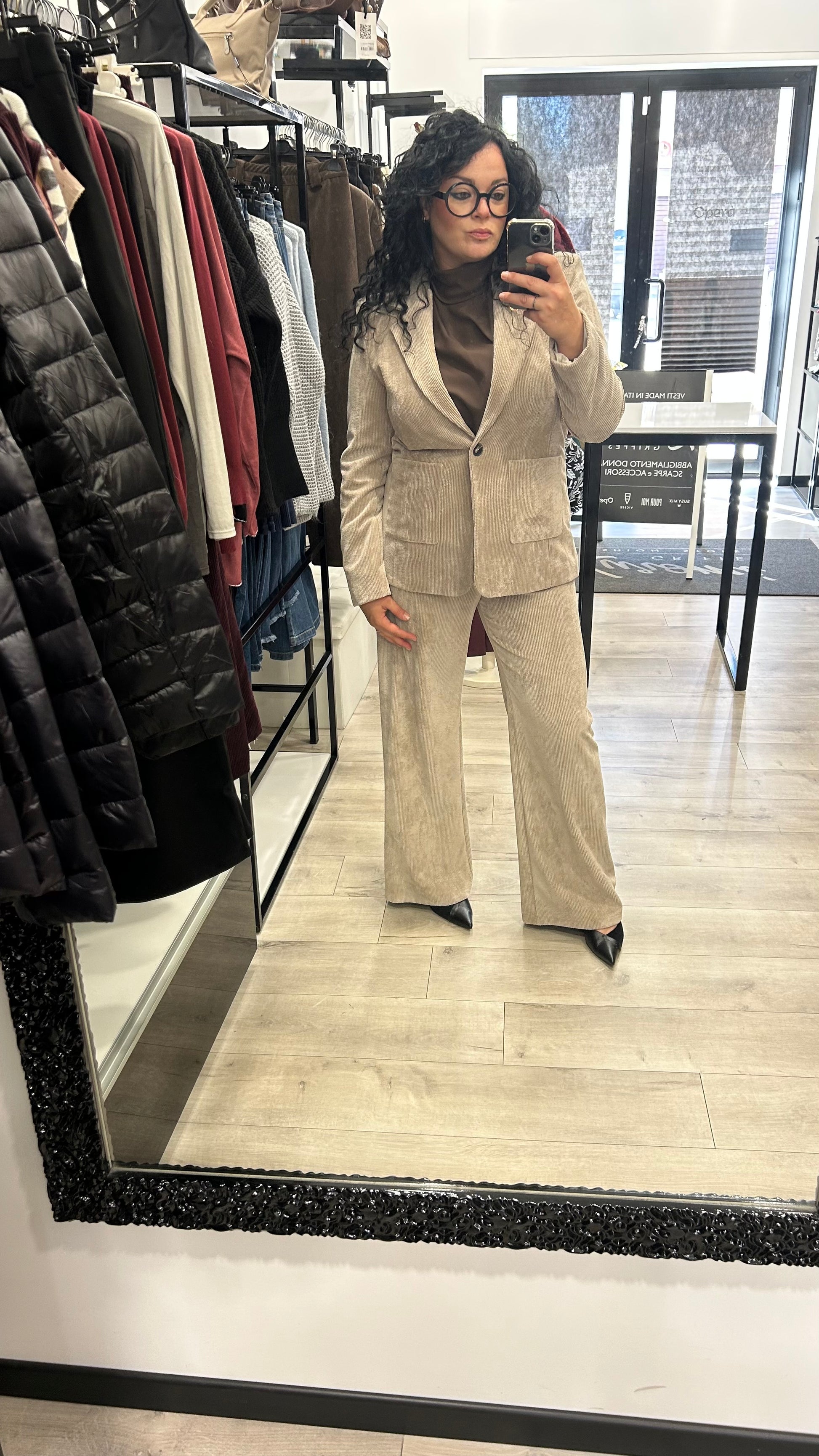🔸 Tessuto: Velluto millerighe morbido e strutturato, perfetto per l’autunno/inverno