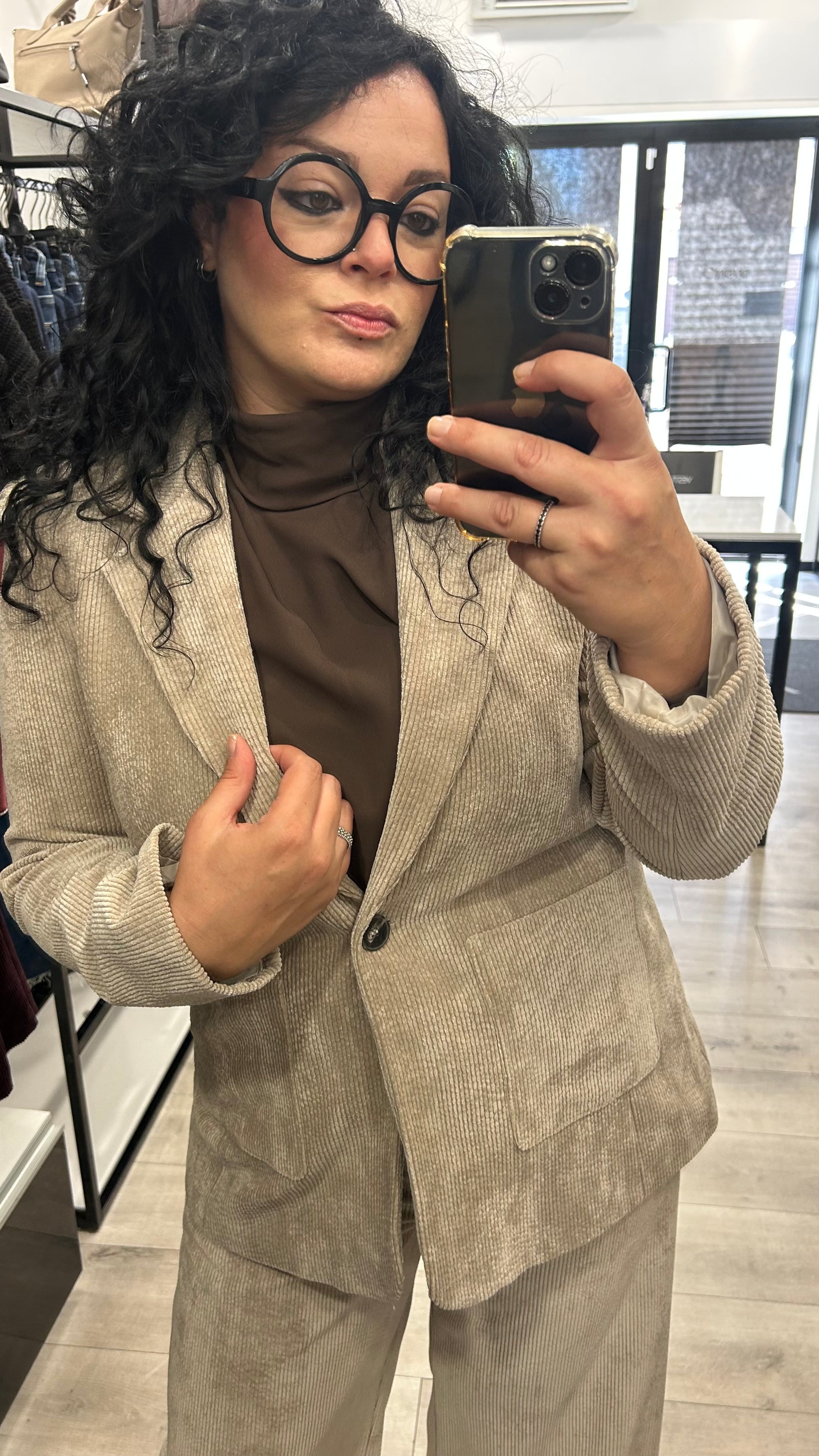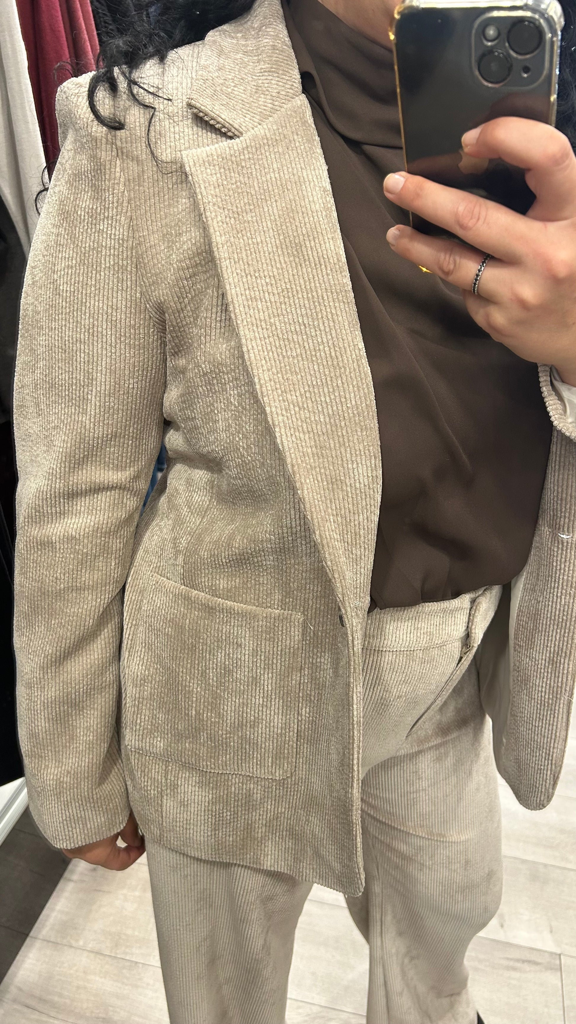 Aggiungi un tocco di classe al tuo look con questa giacca in velluto millerighe dal taglio elegante ma super versatile! 🤎