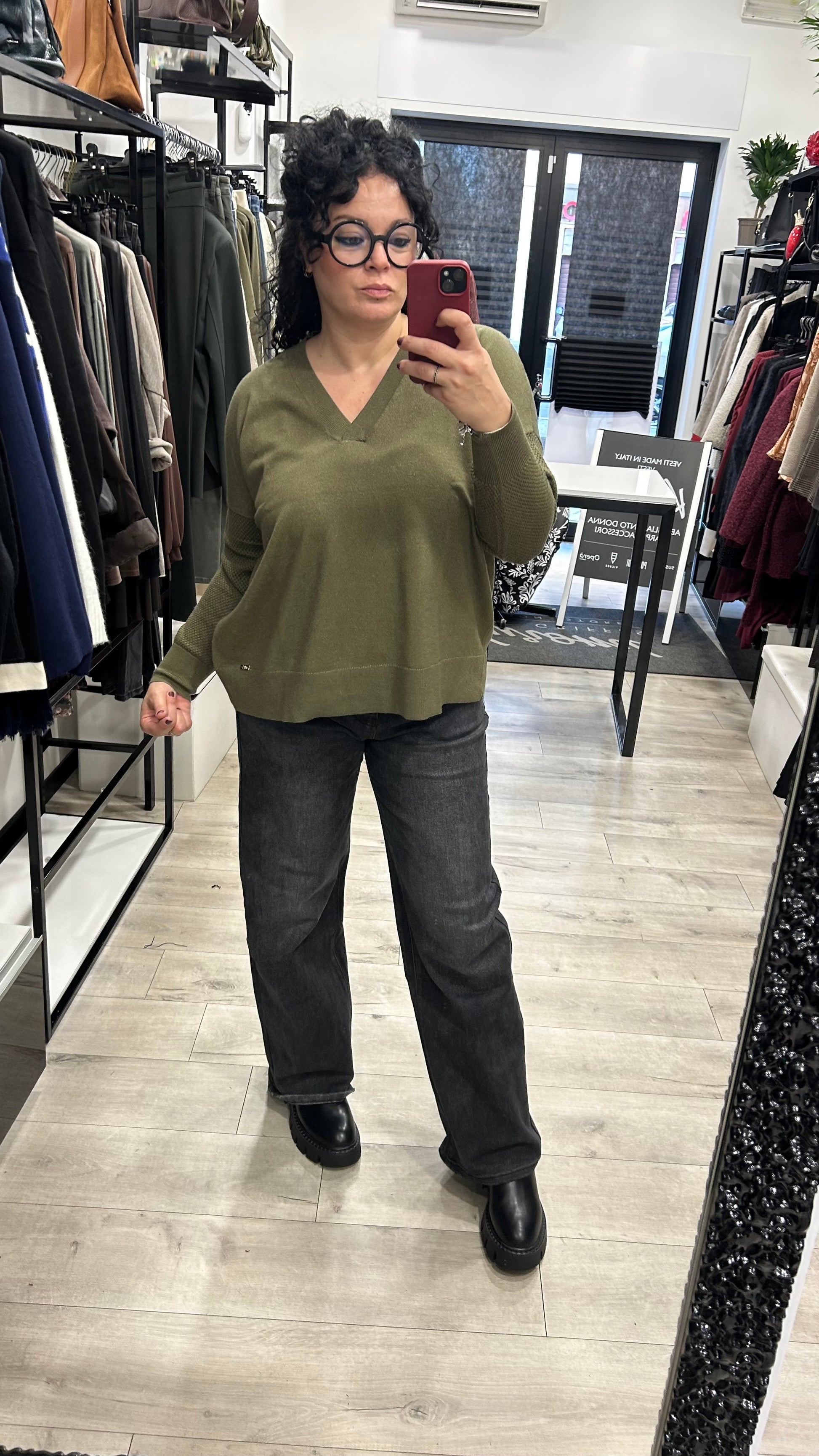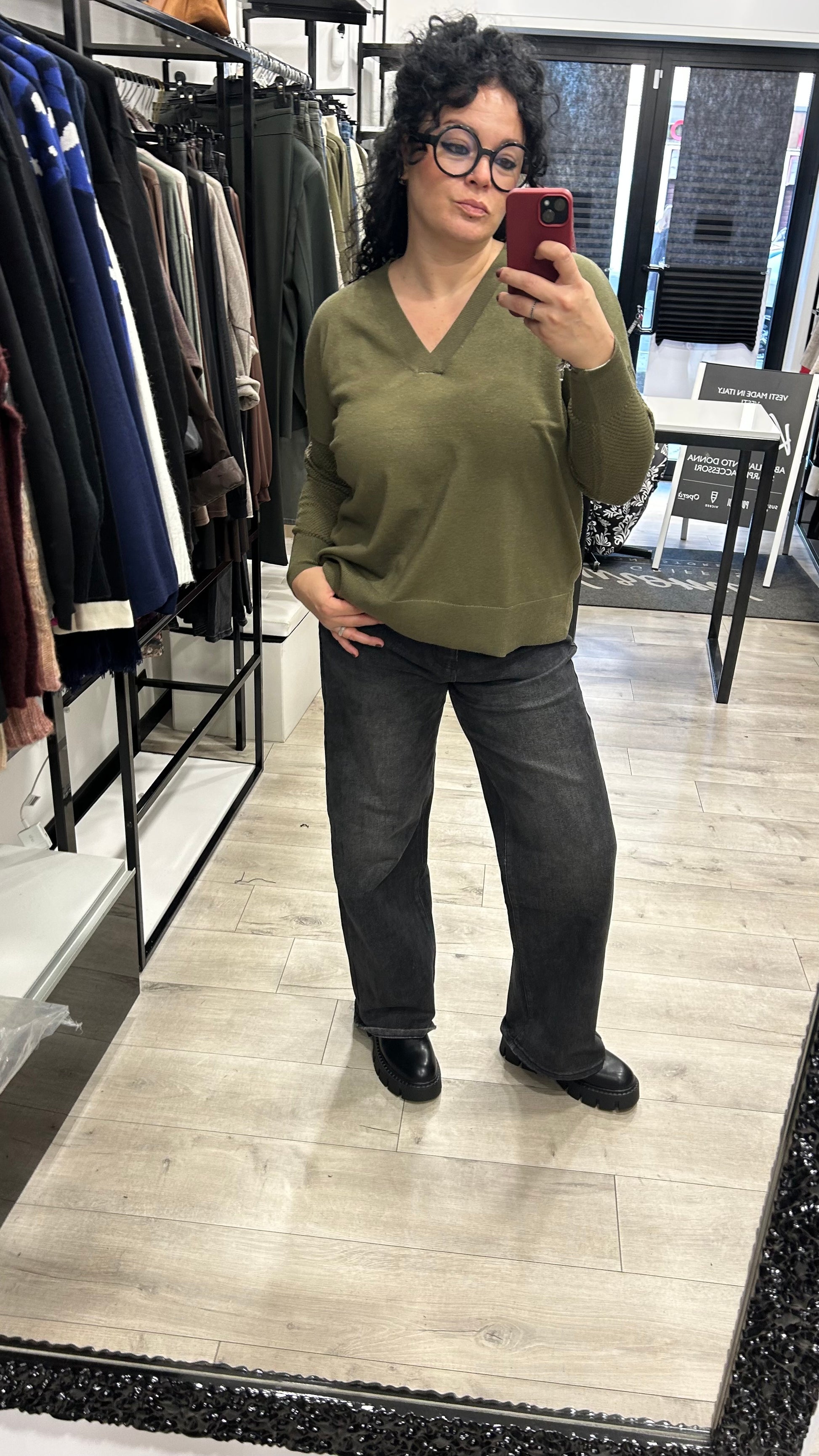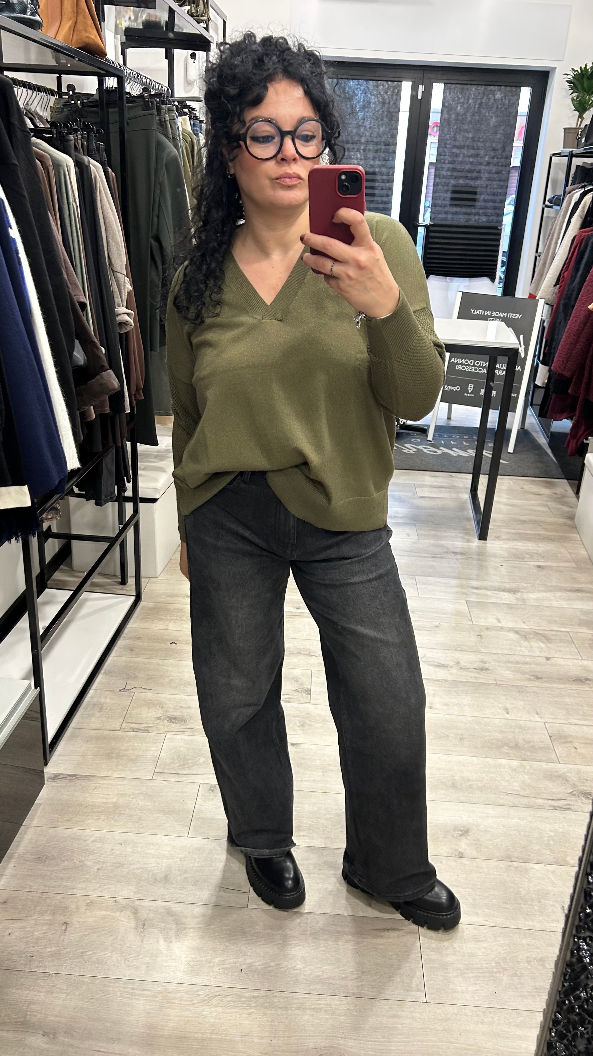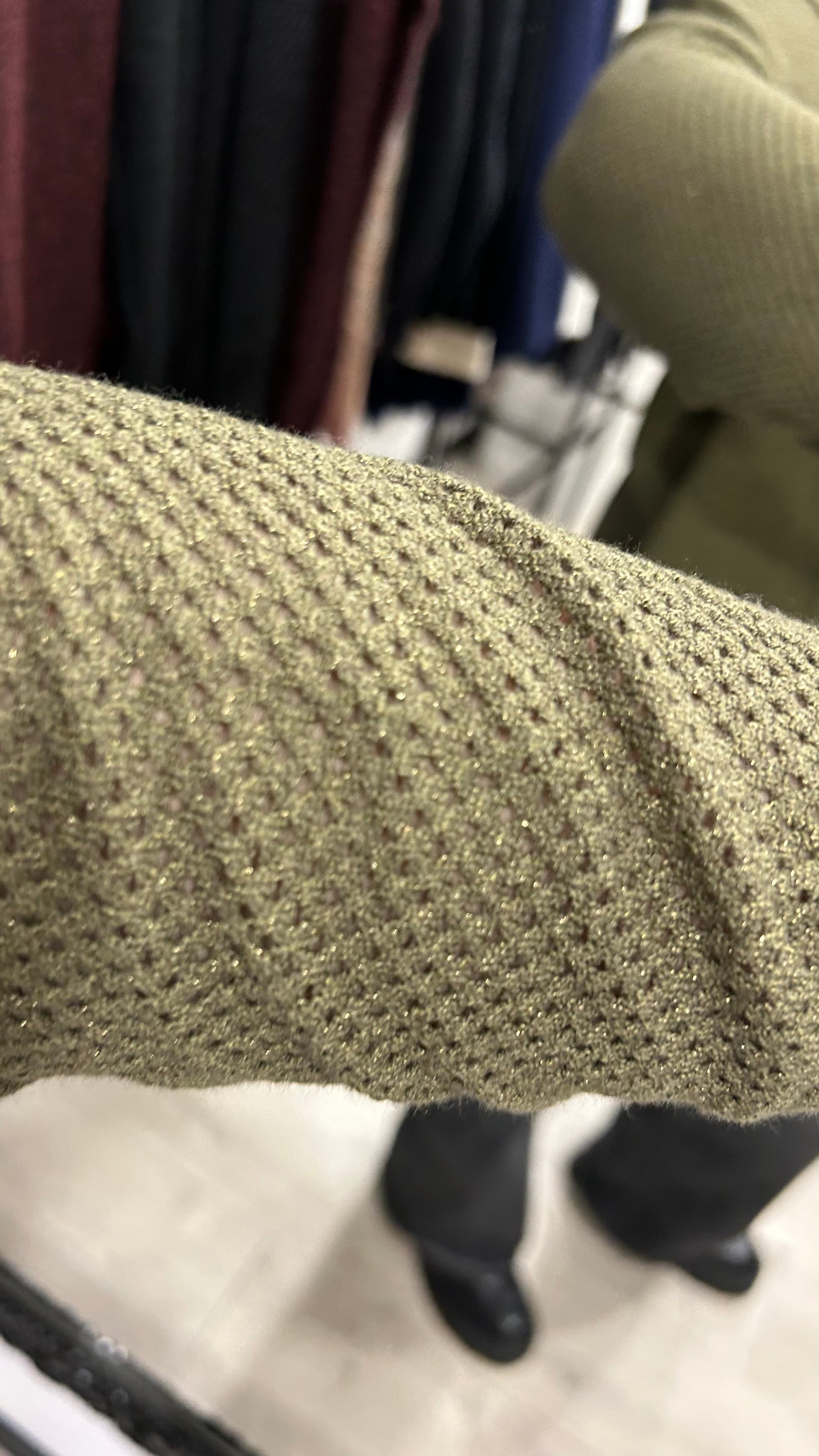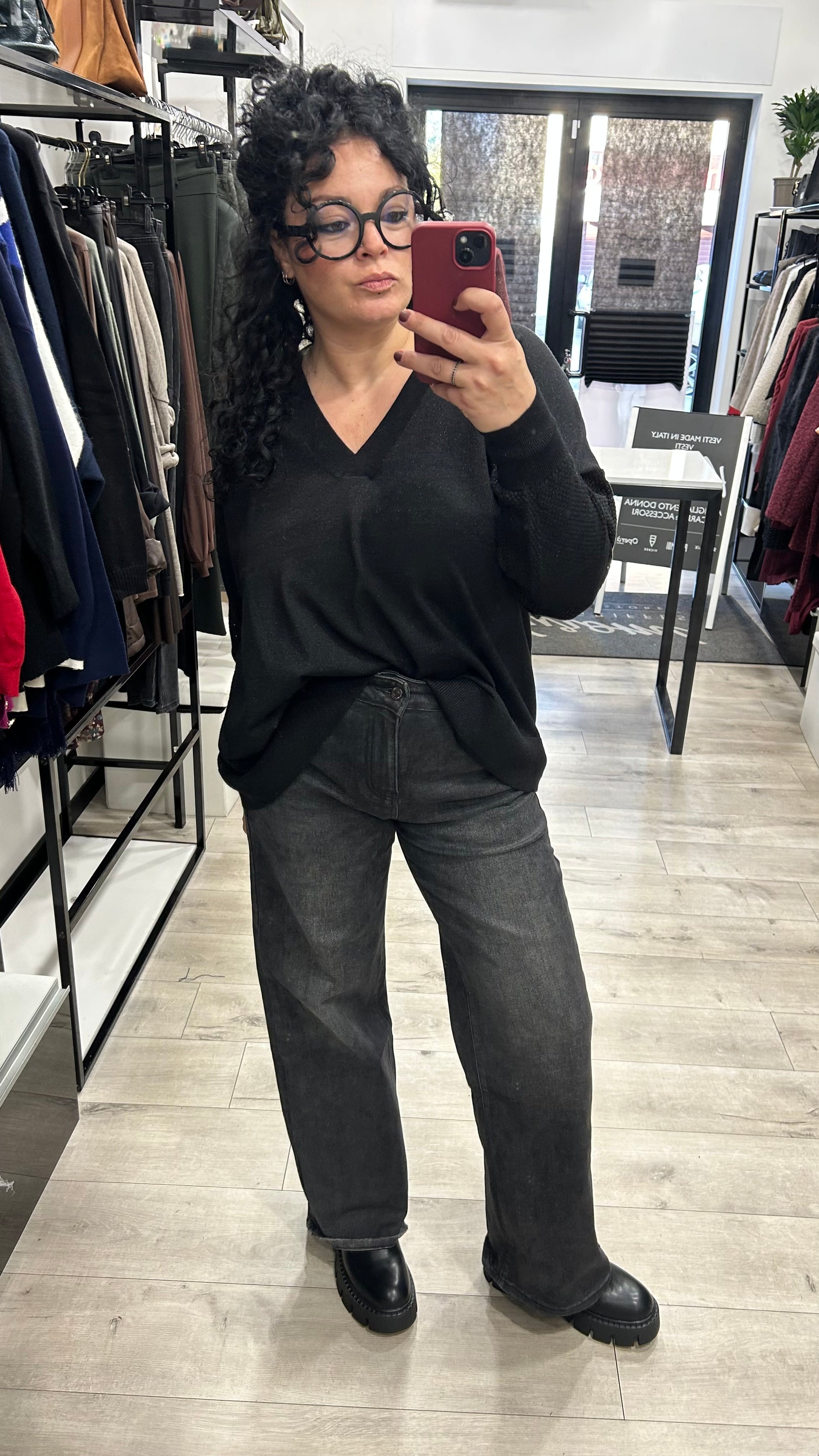 Maglia over con elegante scollo a V, realizzata in filato con lurex per un tocco brillante ✨